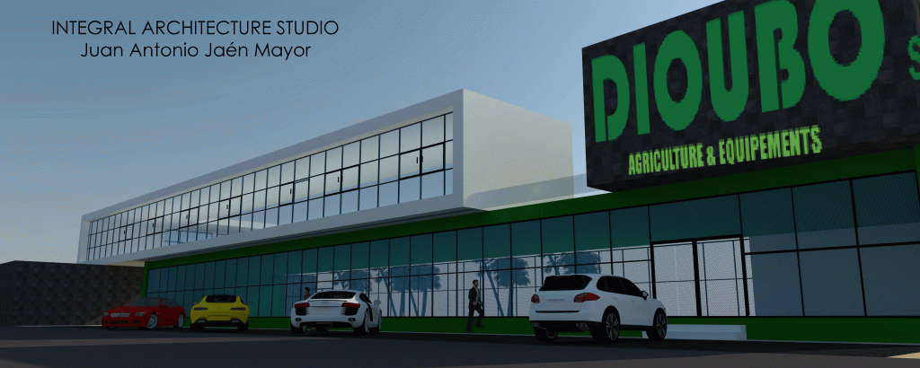 Infografías 3d de la concepción inicial de la rehabilitación de la zona comercial de Agroquímicos Vigueras.