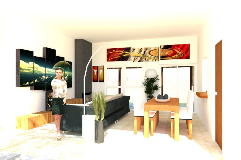 Perspectivas interiores  de vivienda unifamiliar