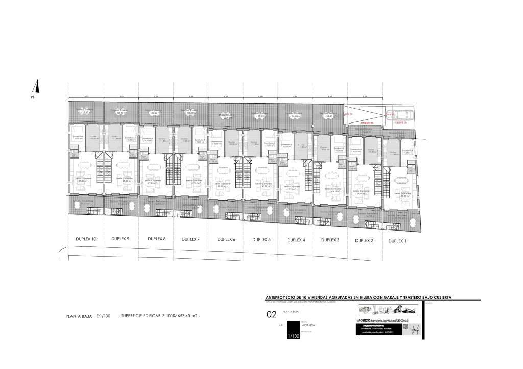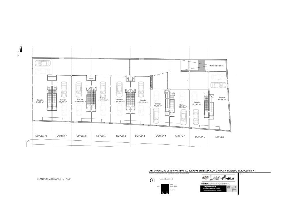 Anteproyecto de 10 viviendas unifamiliares agrupadas en hilera con garaje en planta semisótano y trastero bajo cubierta.