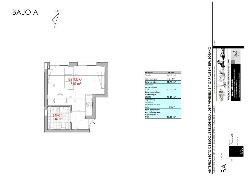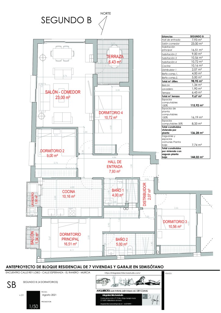 ANTEPROYECTO PARA SOLAR SITUADO EN LA ESQUINA DE LA CALLE REY LOBO CON LA CALLE ESPERANZA – EN EL RANERO – MURCIA