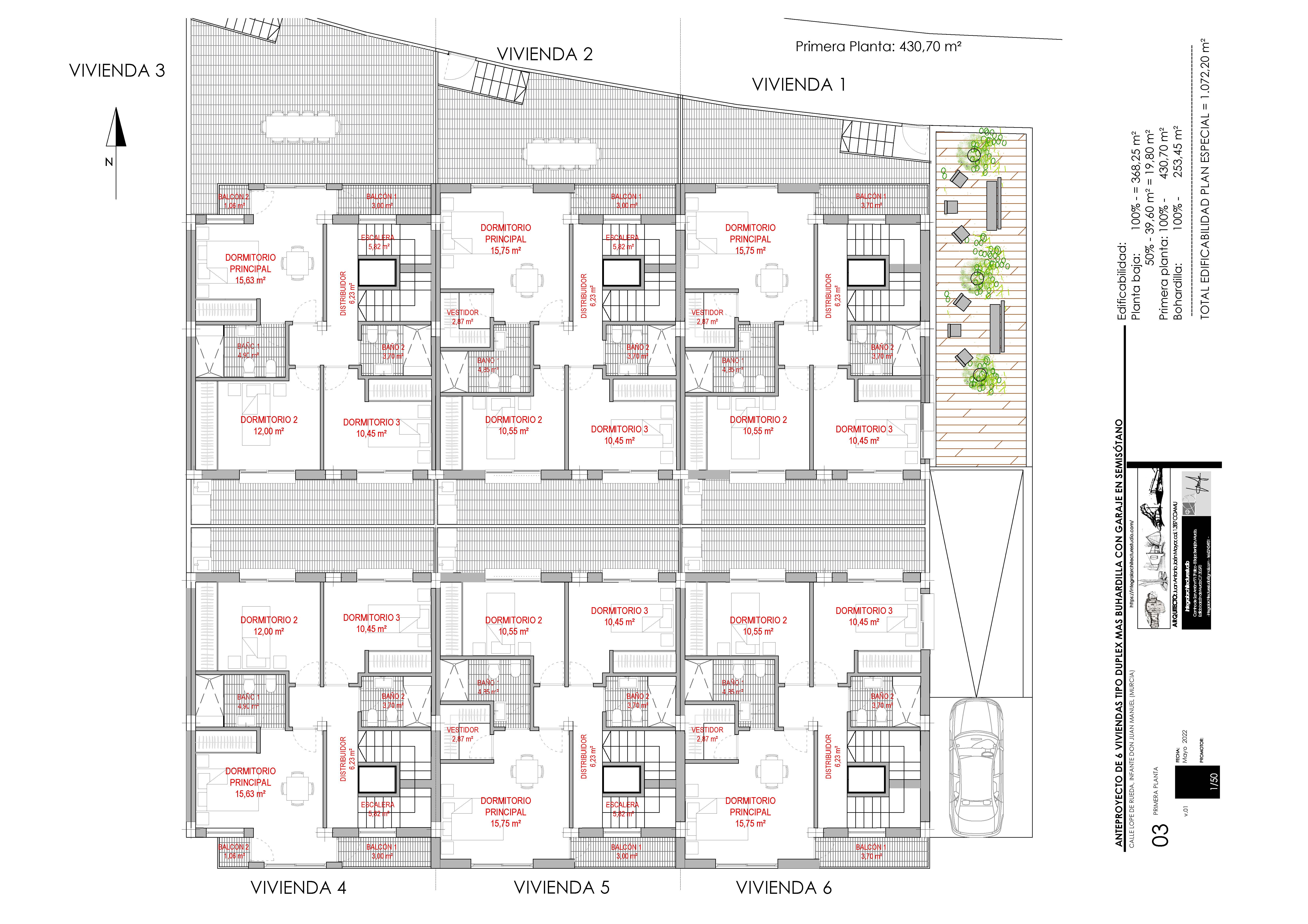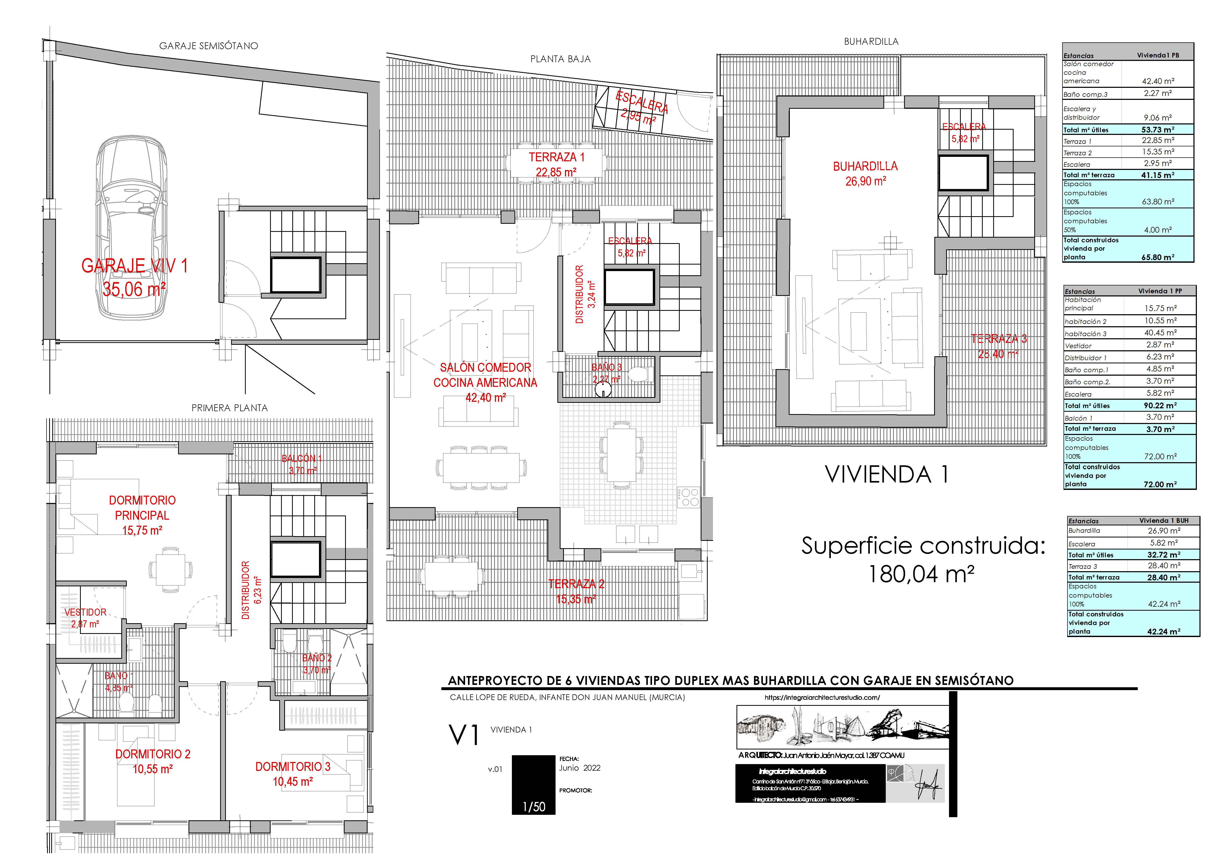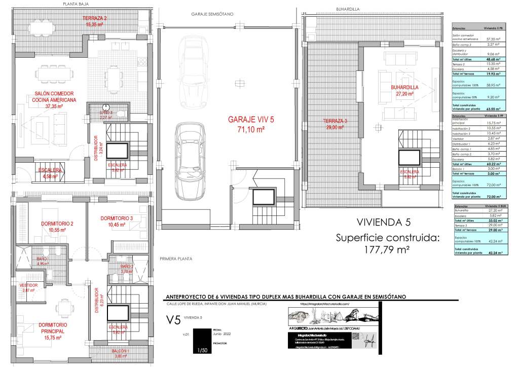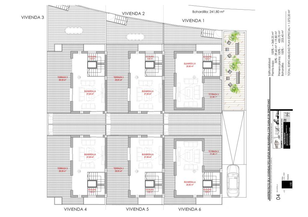 ANTEPROYECTO DE 6 VIVIENDAS AGRUPADAS TIPO DUPLEX CON BUHARDILLA Y GARAJE EN EL INFANTE (MURCIA) CALLE LOPE DE RUEDA